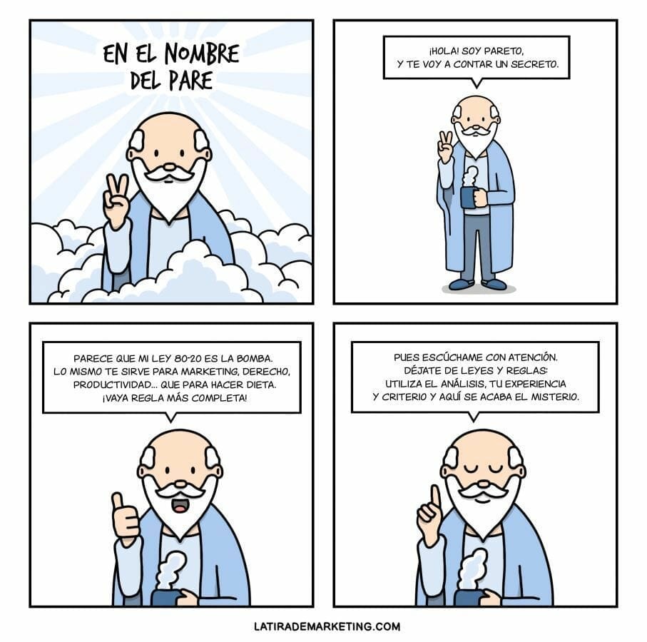 Pareto era economista, sociólogo y filósofo que estudió la distribución de la riqueza en Italia. Vilfredo concluyó que el 20 % de los propietarios acumulaban el 80 % de las tierras, mientras que el 80 % restante apenas tenía el 20 %. Así nació la regla del 80-20 y desde entonces (el siglo XIX), la Ley de Pareto ha dado mucho de sí.