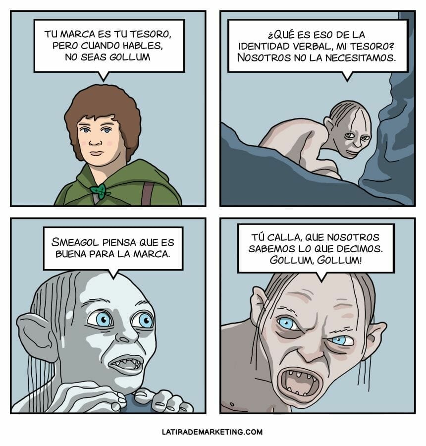 “Mi tesoro, dicen que una marca no es solo un logo, que más allá de la identidad visual está la verbal. ¡Identidad Verbal dicen! ¡Malditos hobbitss ignorantes!”